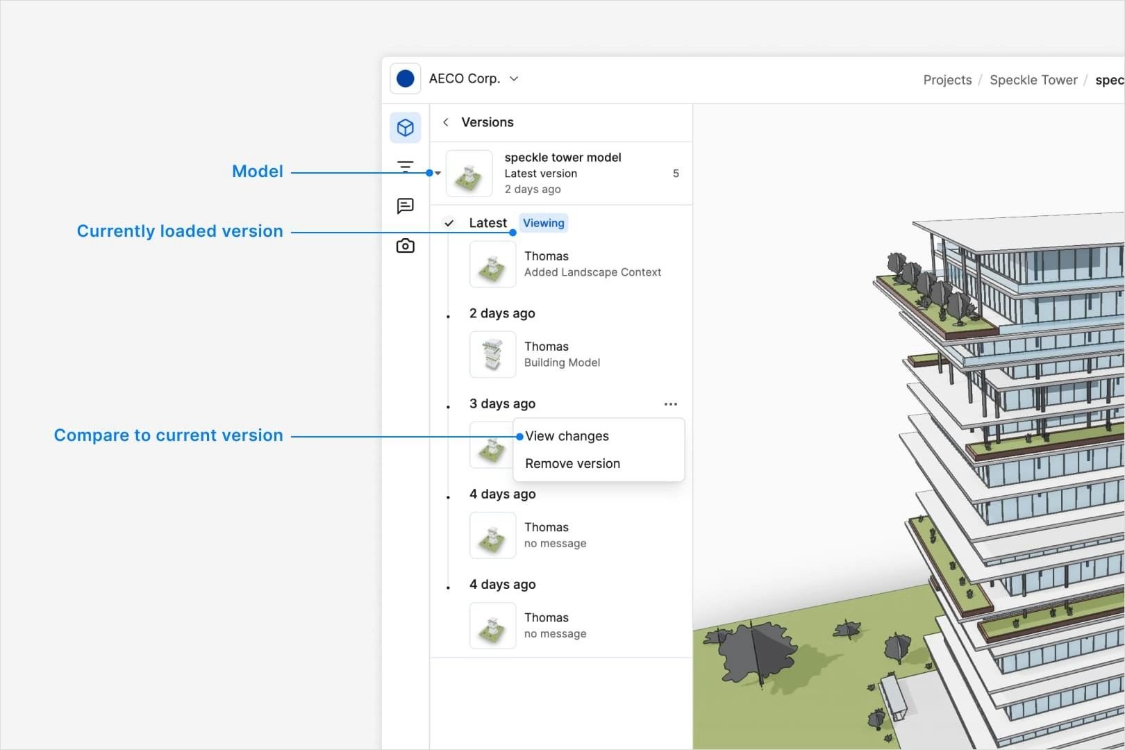 - Use the diffing feature to compare versions and spot differences in geometry, parameters, or structure.
