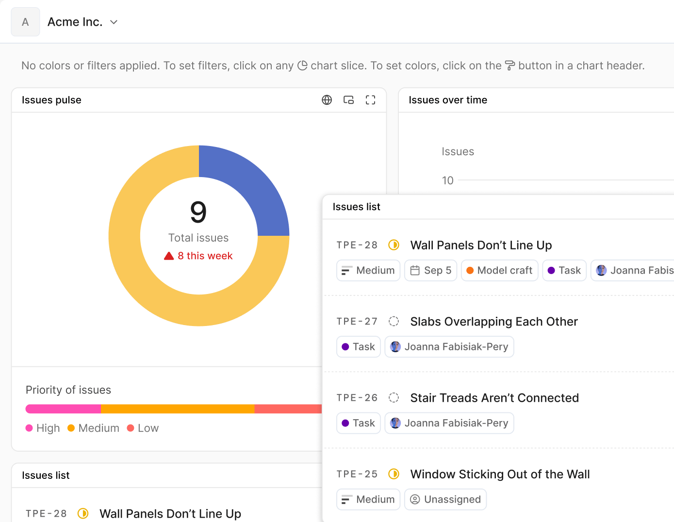 Set a deadline for when the issue should be resolved. Overdue issues can be filtered and highlighted in issue lists.Priority